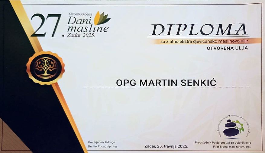| Diploma za "Zlatno ekstra djevičanko maslinovo ulje" | |||||||